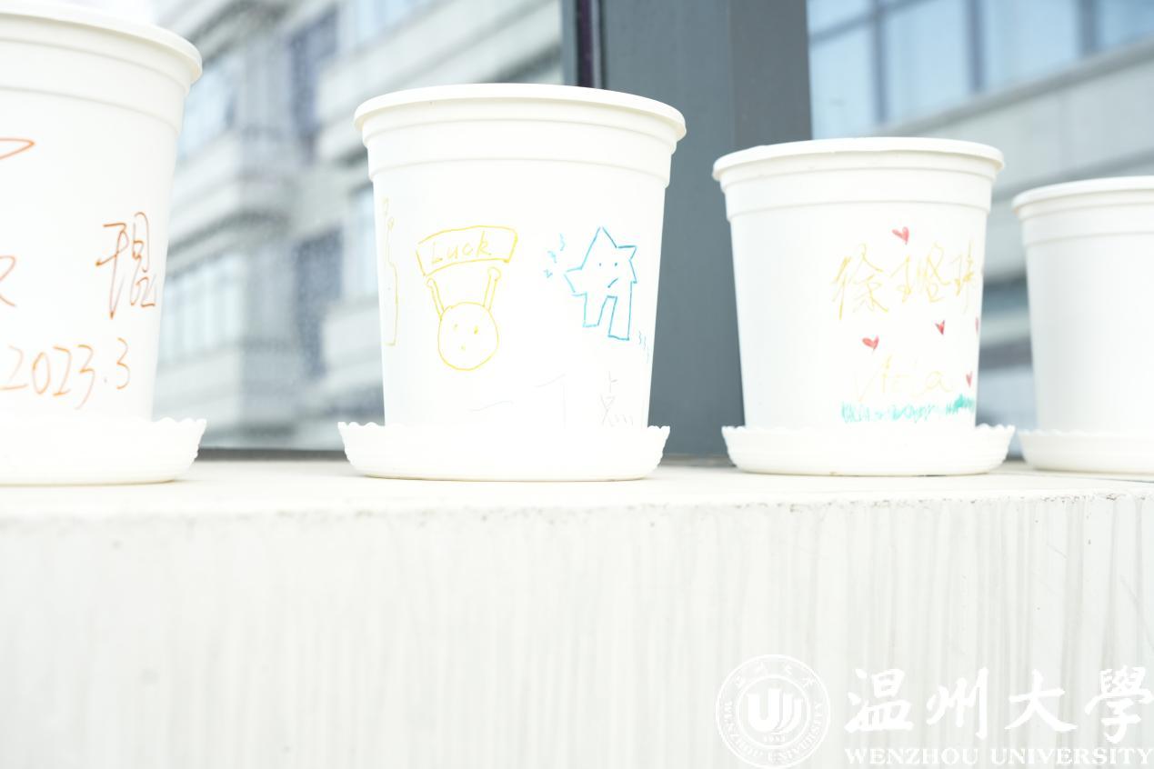 在活动现场,带有精美插画和寄语的花盆和各类鲜花种子整齐的摆放在桌面上。首先,大家精心挑选各自心怡的花盆,用彩笔画一朵小花,印一个签名,花盆上被标注上了个人的印记。铲一盆土,放几颗种子,浇足了水,小花朵的生命便在大家的手里悄然萌发。